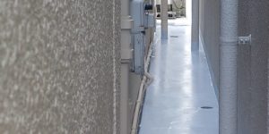 弊組合員:(有)環衛開発の修繕工事をご紹介します。 *犬走り 建物の周囲の外構に設ける細い道の事です ウレタン防水の部分補修を行います。 ・プライマー塗布 ・クラックへコーキング処理 ・ウレタン …