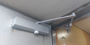弊組合員:(株)東都企画の修繕工事をご紹介します。 劣化して動作不良になったクローザーの取替えを行います。 ドアクローザー ドアの上部に取付けられた金物 扉が急に閉じる事が無い様にゆっくりと …