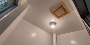 弊組合員:(有)環衛開発の修繕工事をご紹介します。 漏水対応を終えたので天井復旧にかかります。 ケイカル板を天井の寸法にあわせて張っていきます。 張り終えた所から塗装を行い作業完了となります。