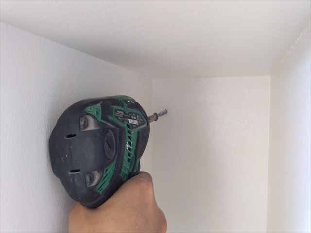 靴箱の取付けを行います。