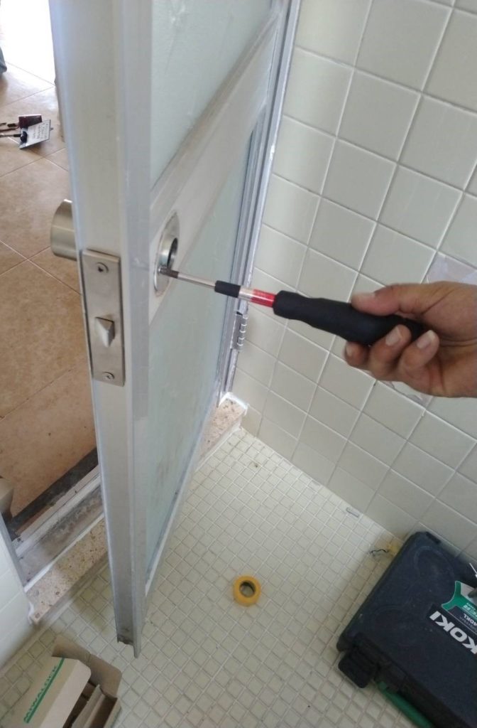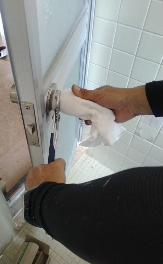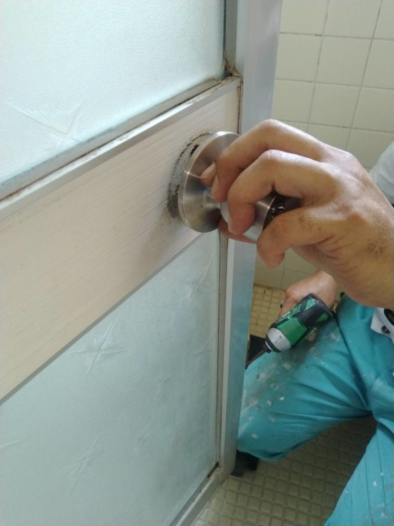修繕:浴室ドアのカギ交換 投稿日: 2022年11月1日2022年10月31日 投稿者: 事務局 弊組合員:(株)東都企画の修繕工事をご紹介します。 開閉不良のため、浴室ドアのカギを新しい品物と替えます。 開け閉めを確認して、交換完了です。