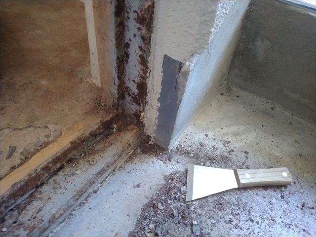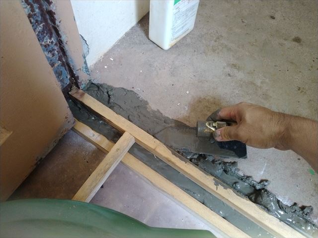 修繕:玄関土間のモルタル補修 投稿日: 2022年12月27日2022年12月27日 投稿者: 事務局 弊組合員:(株)東都企画の修繕工事をご紹介します。 玄関土間をモルタル補修します。 サビでぼろぼろの下枠を外して仮の枠を作ります。 モルタルを入れ乾いたところで、仮枠を外して作業完了。