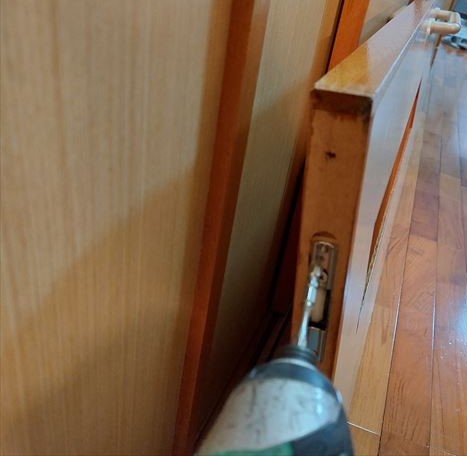 扉の戸車交換、スライドするのに引っ掛りがでるので