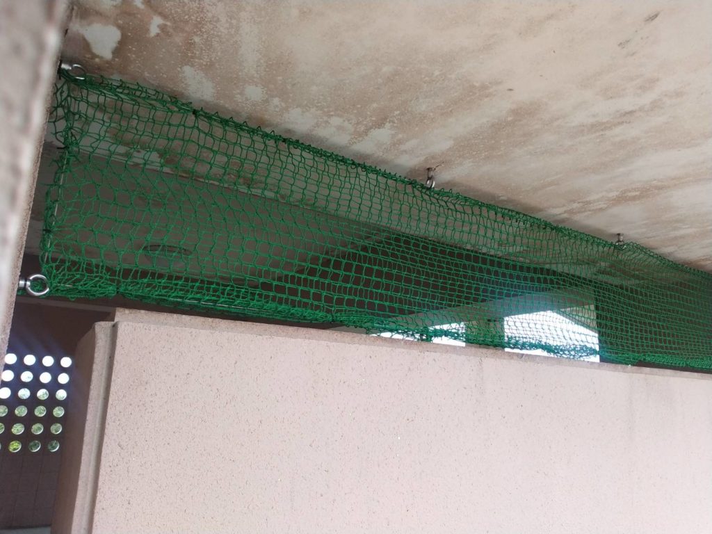 修繕:落下防止のネット張り 投稿日: 2023年3月7日 投稿者: 事務局 弊組合員:(株)東都企画の修繕工事をご紹介します。 階段踊り場に落下防止のネットを張ります。 準備したネットとワイヤー、アイナット、アンカーボルトなど。 穴を開けアイナットとワイヤーを取付、その上からネットを張ります。 各階にネット張り終えて完了しました。