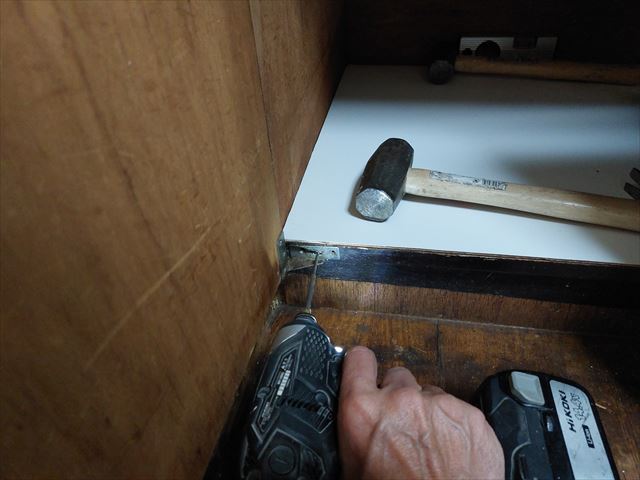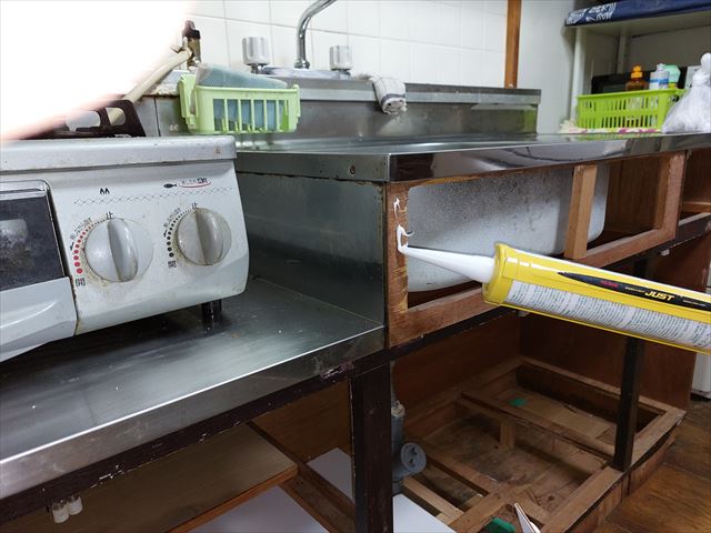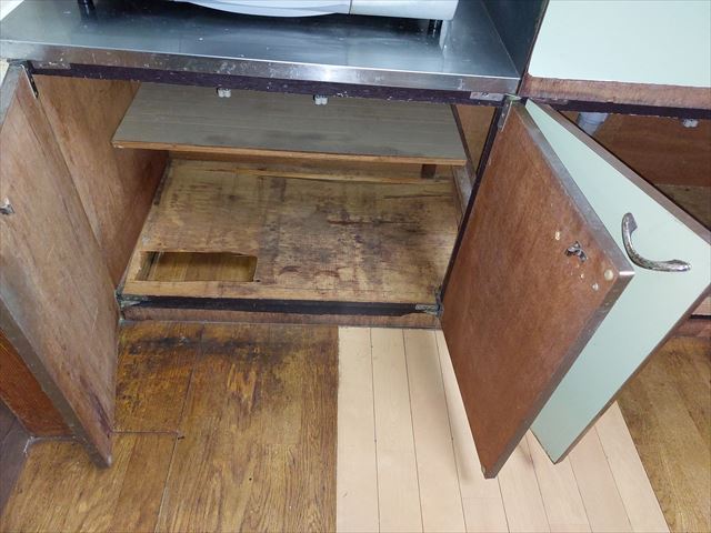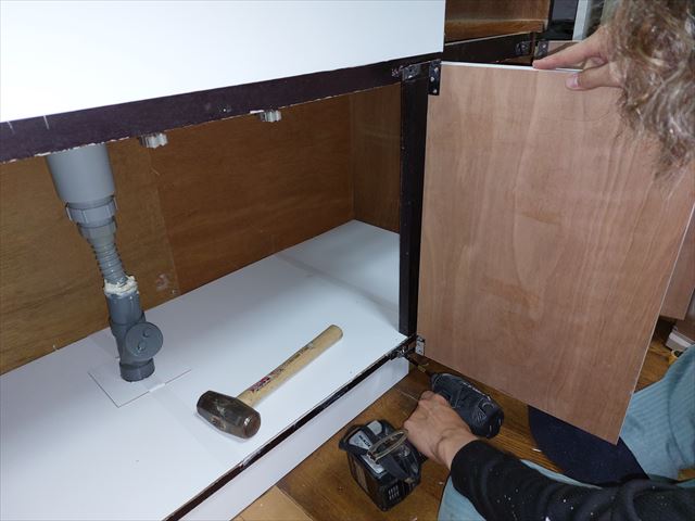修繕:流し台の表面合板、底板、取手 投稿日: 2023年3月24日2023年3月23日 投稿者: 事務局 弊組合員:(有)環衛開発の修繕工事をご紹介します。 表面の合板や扉の取手などが外れています。 全面外して、新しい合板を貼ります。 底板に補強を加えて、底板の復旧。 ドアの取手と受けを取り付けて、修繕を終えました。