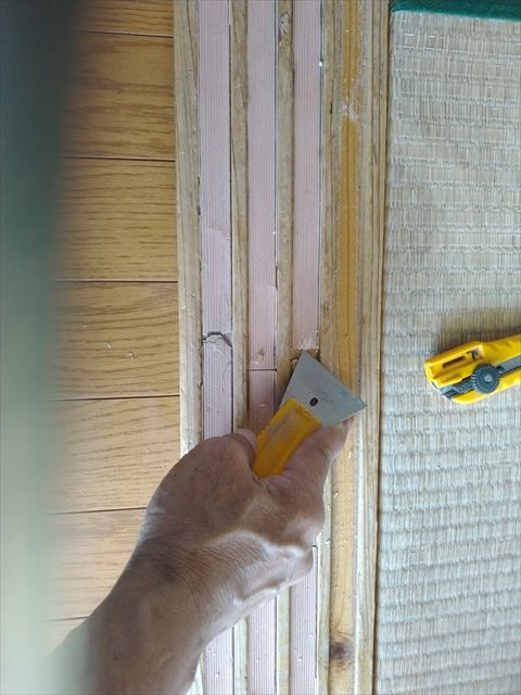 修繕:敷居スベリ 投稿日: 2023年4月14日2023年4月13日 投稿者: 事務局 弊組合員:(株)東都企画の修繕工事をご紹介します。 敷居の修繕 襖を滑らせるためのレールが割れているので、購入した敷居スベリで張替え。 市販されているので、手に入りやすいです。 張りなおして修繕を終えました。