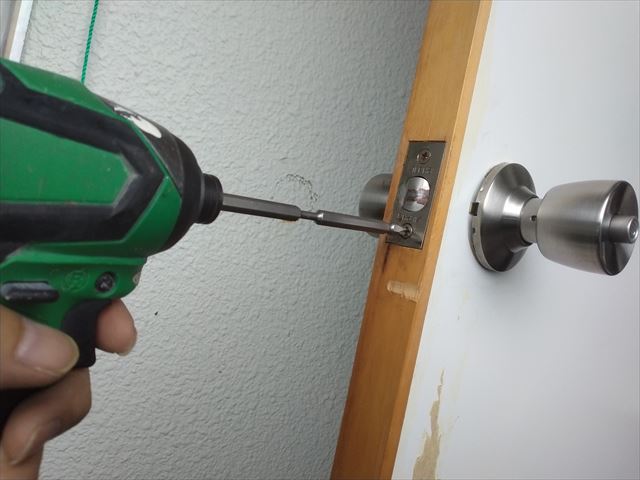 修繕:間仕切り錠の取替え 投稿日: 2023年5月12日 投稿者: 事務局 弊組合員:(株)東都企画の修繕工事をご紹介します。 間仕切り錠の修繕 「間仕切り錠」 ドアをロックする機構は備えていますが、 非常時にはコインなどで容易に解錠できる 非常解錠付きの錠前。 新しい間仕切り錠と取替えます、扉の開閉と施錠を確認して完了です。