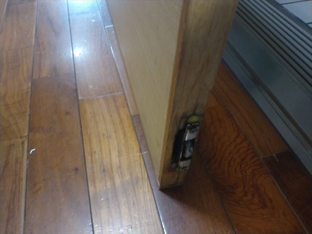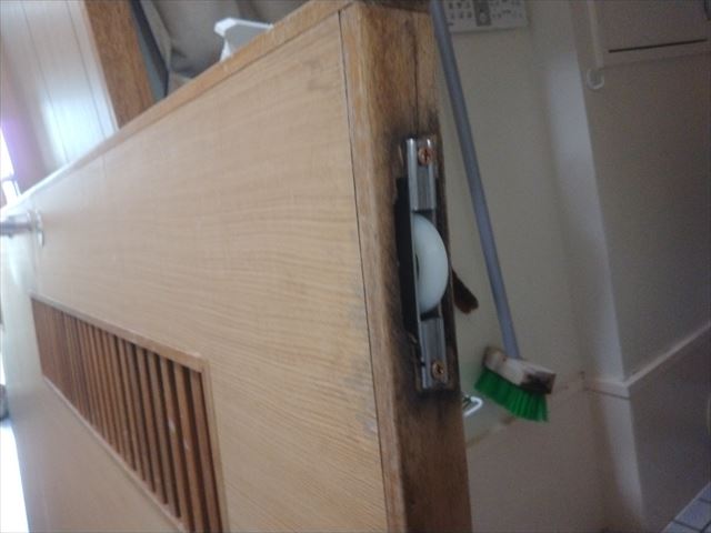 扉を外してみた所、戸車が古くなって動きが悪くなっています。