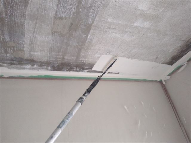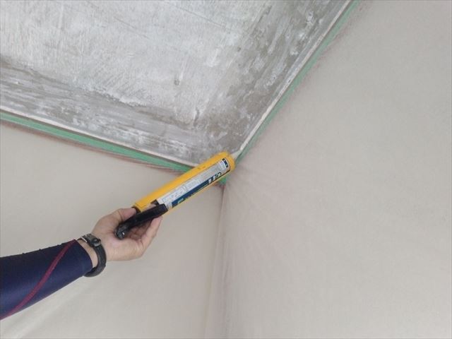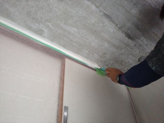 修繕:天井ダンコートの剥ぎ取り 投稿日: 2023年10月16日2023年10月16日 投稿者: 事務局 弊組合員:(有)環衛開発の修繕工事をご紹介します。 天井のダンコートは、古くなると剥がれ易く少しずつ落ちてきます。 周囲が汚れない様にしっかりと養生して、吹付けられたダンコートをスクレッパーで剥ぎ取ります。 剥ぎ取り後は塗装対応です。 塗装前に周囲をコーキング、下地へシーラーを塗って白ペンキで塗装します。