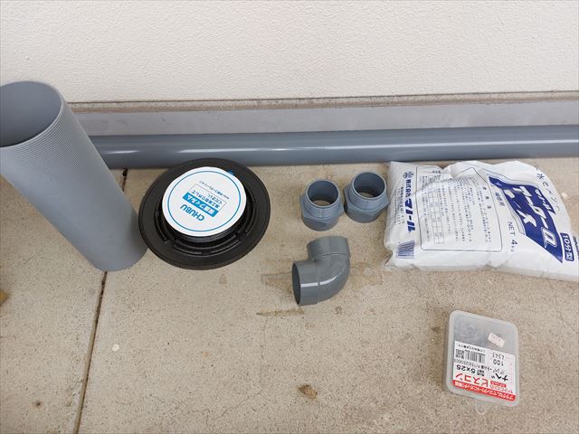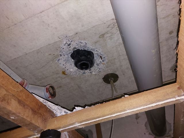 破損した排水管を取り除き、塩ビパイプに取替え