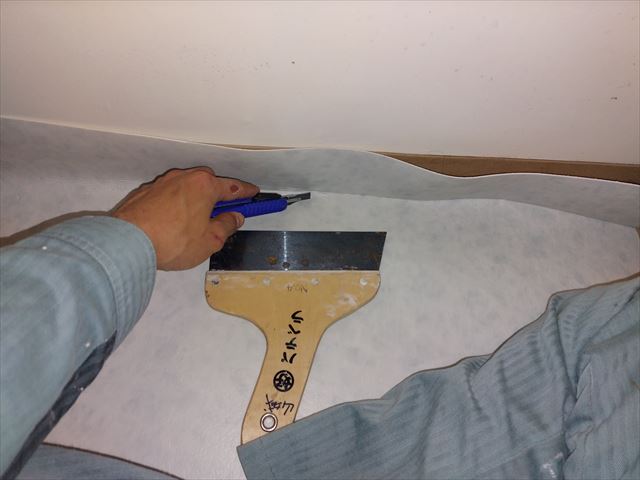 修繕:クッションフロア(リューム)張替え 投稿日: 2025年12月22日 投稿者: 事務局 弊組合員:(株)東都企画の修繕工事をご紹介します。 小修繕のご案内、クッションフロア(リューム)張替え *クッションフロア(リューム) 床材のひとつでビニール素材を使用し、 耐水性やクッション性や高い事が特徴。 水や汚れに強く、価格もリーズナブルなため、 キッチンや洗面所などの水回りに使われます。 寸法にあわせて、クッションフロアをカット、ボンドで張り合せ、周りをコーキング処理。 張替え完了。