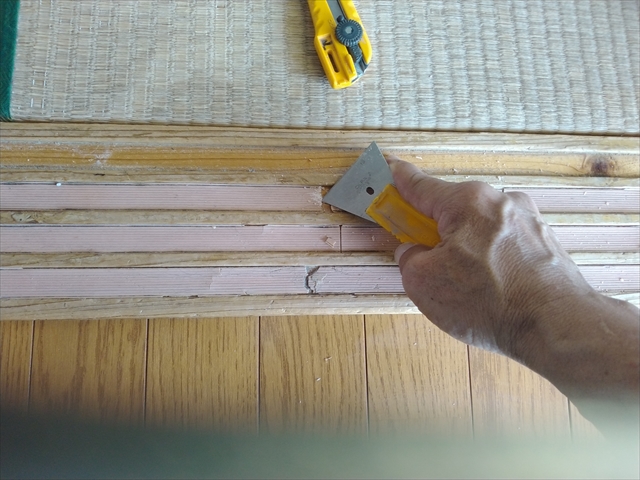 修繕:敷居レールの張替え 投稿日: 2026年1月19日2026年1月19日 投稿者: 事務局 弊組合員:(株)東都企画の修繕工事をご紹介します。 小修繕:敷居レールの張替え 襖を滑らせる敷居レールが割れているので、新しく張替えます。 作業内容は、レールを取り除き準備した”敷居スベリ”を張替えします。 襖の開け閉めを確認して作業完了となりました。